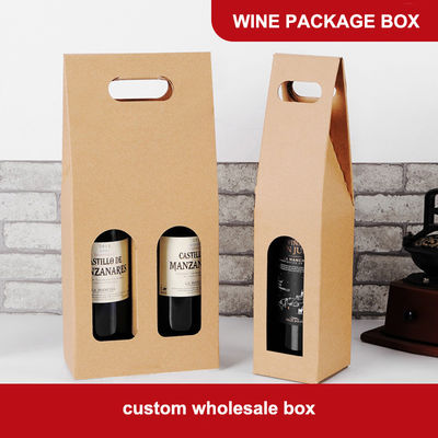 Kotak Hadiah Kemasan Anggur Kertas Bergelombang Coklat Dengan Pegangan